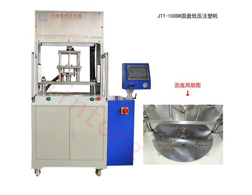 圆盘低压注塑机:锁模方式为圆盘式,增加了注塑效率,适合不到尾线的低压包胶注塑。
